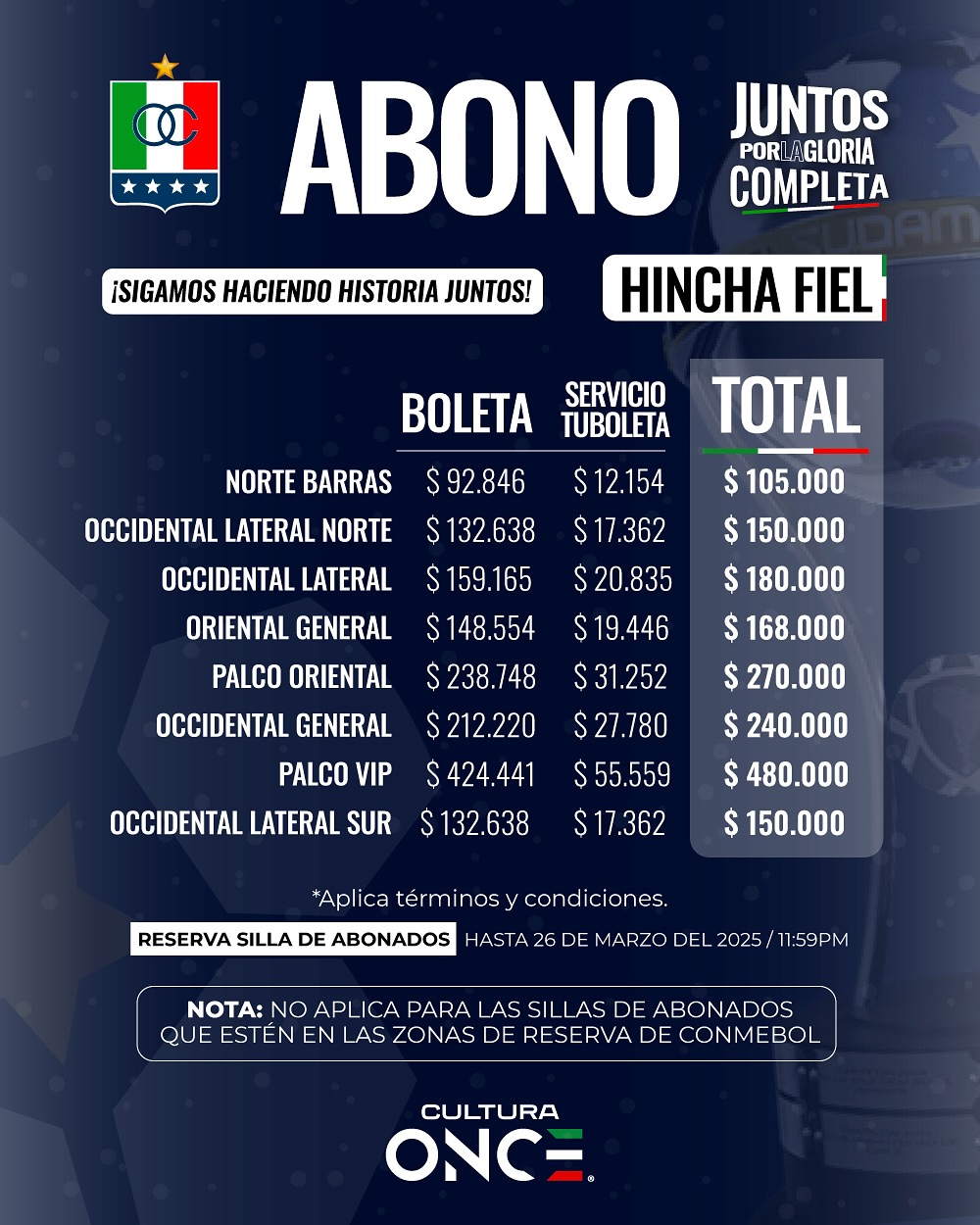 📅 Compra tu abono ahora y haz historia desde la tribuna.