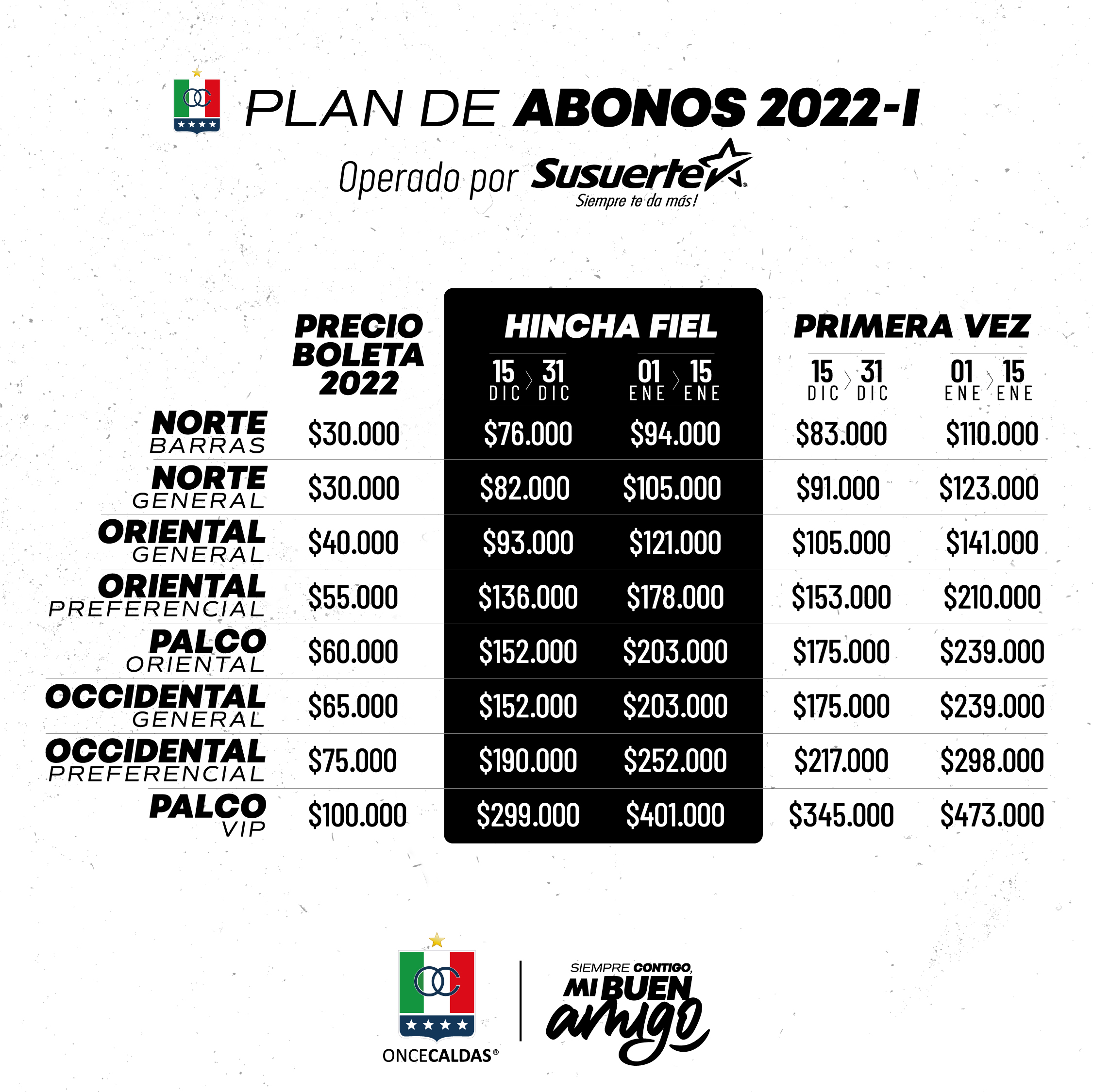 La venta de abonos para el 2022 está a cargo de Susuerte.