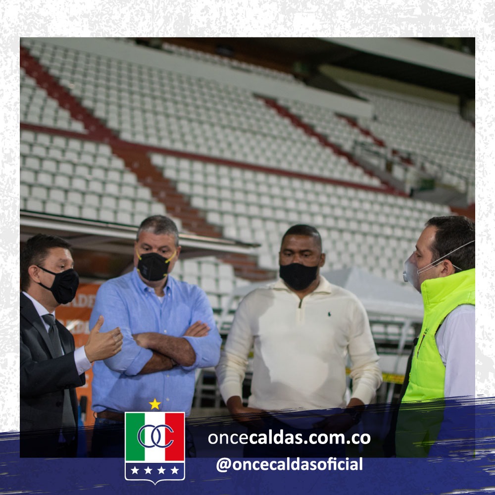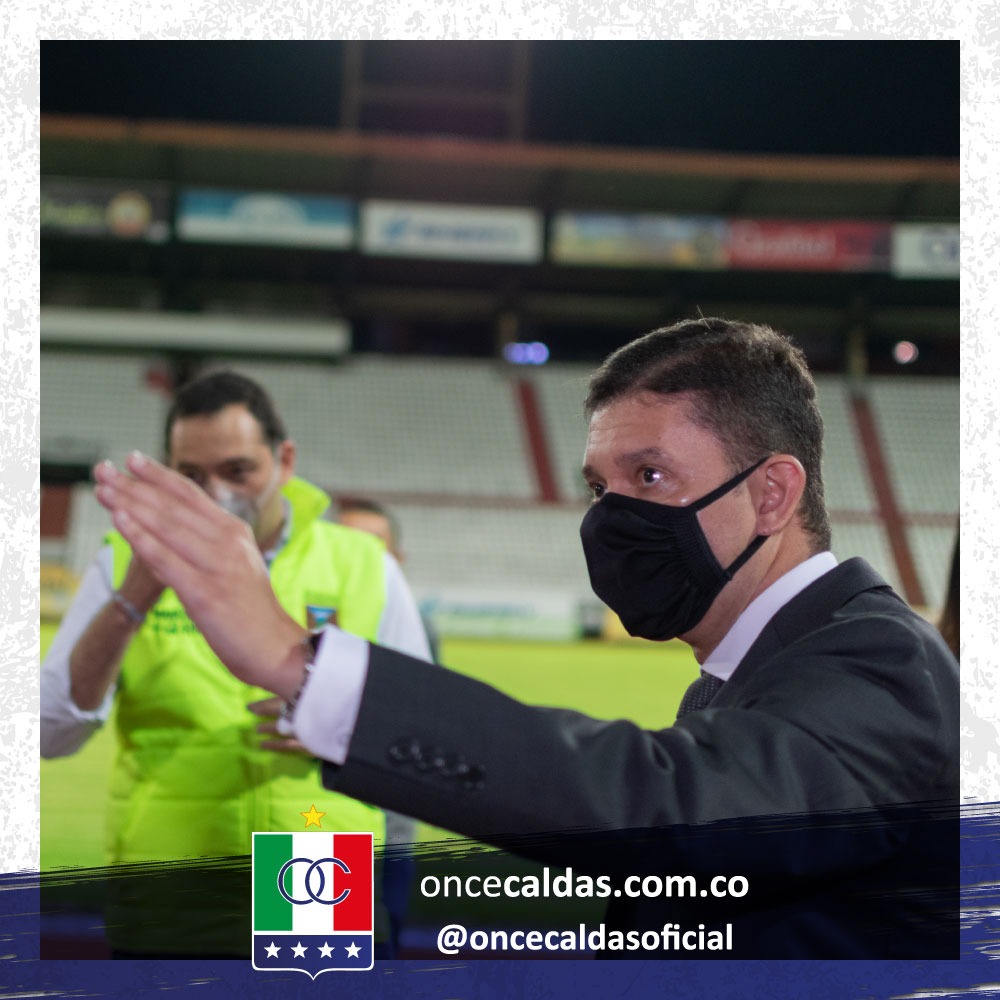 El presidente del Once Caldas, Tulio Mario Castrillón Tobón, acompañó al alcalde de Manizales, Carlos Mario Marín Correa, en su visita al estadio Palogrande, la cual tenía como fin conocer la forma cómo se preparó el club para el retorno a los entrenamientos y a la competencia, cumpliendo el Protocolo de Bioserguridad.
