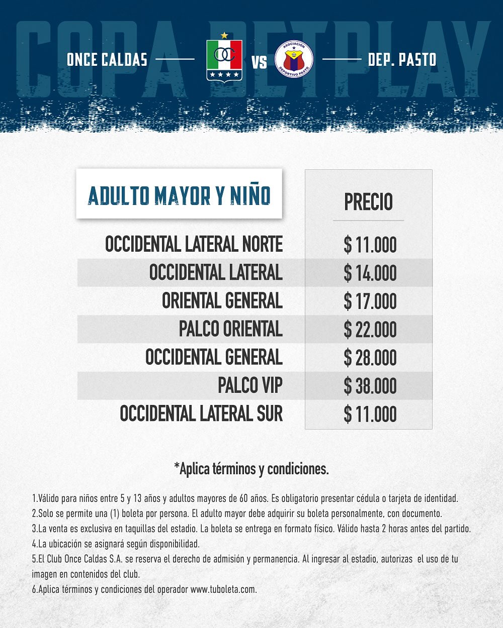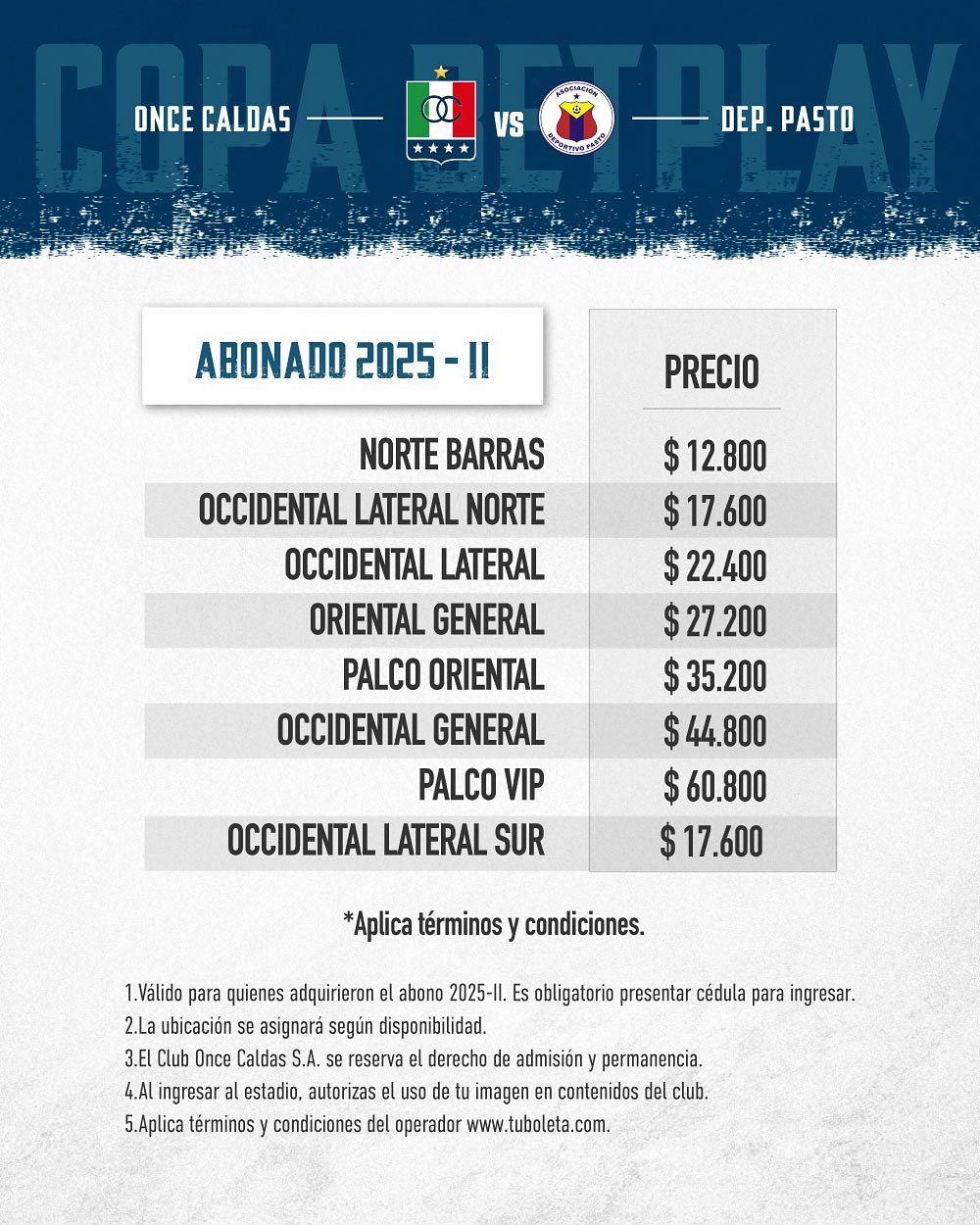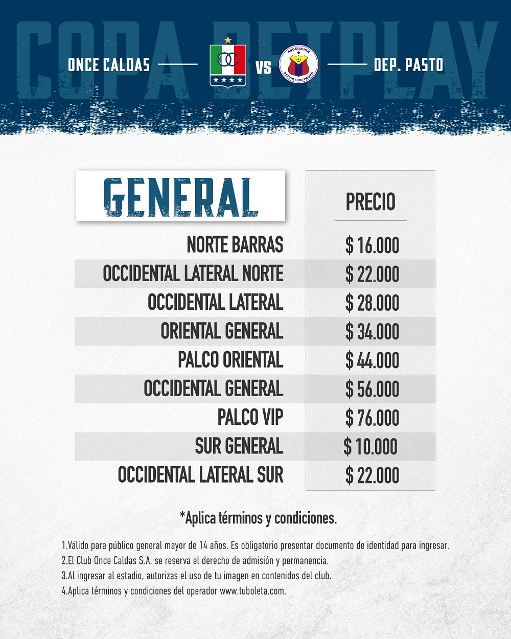 Boletería por Copa vs D. Pasto