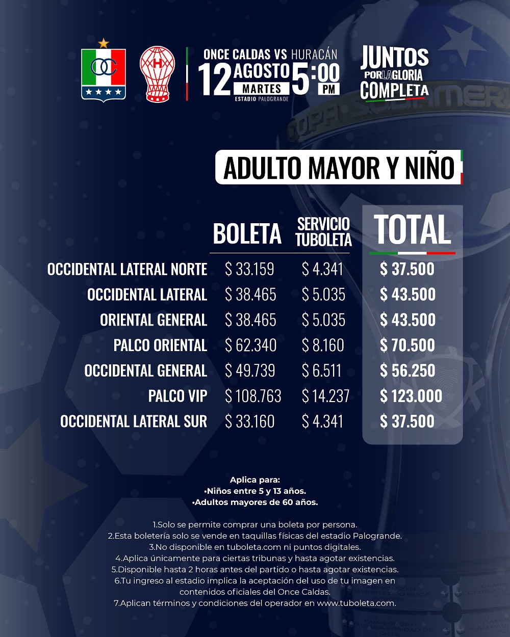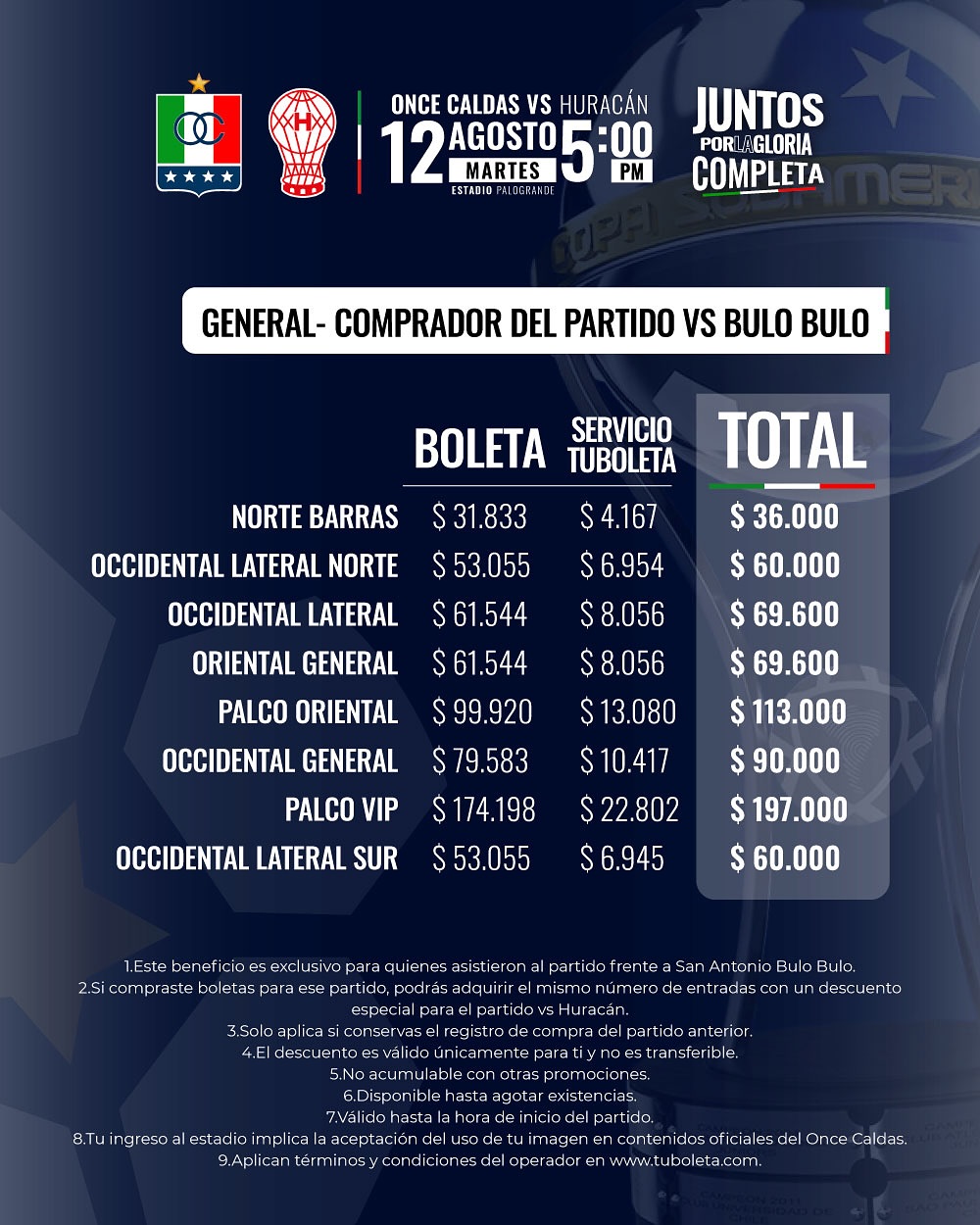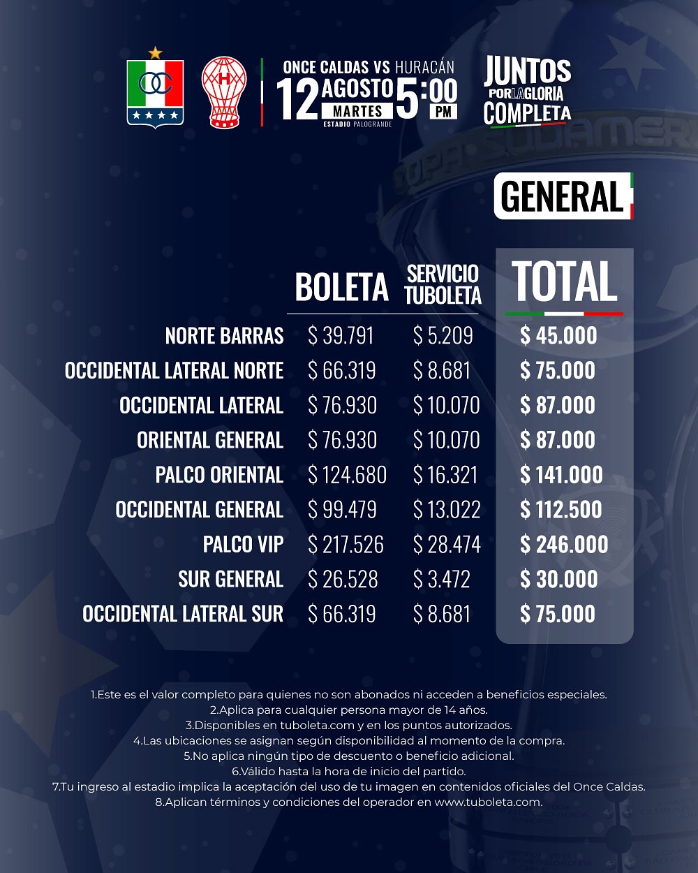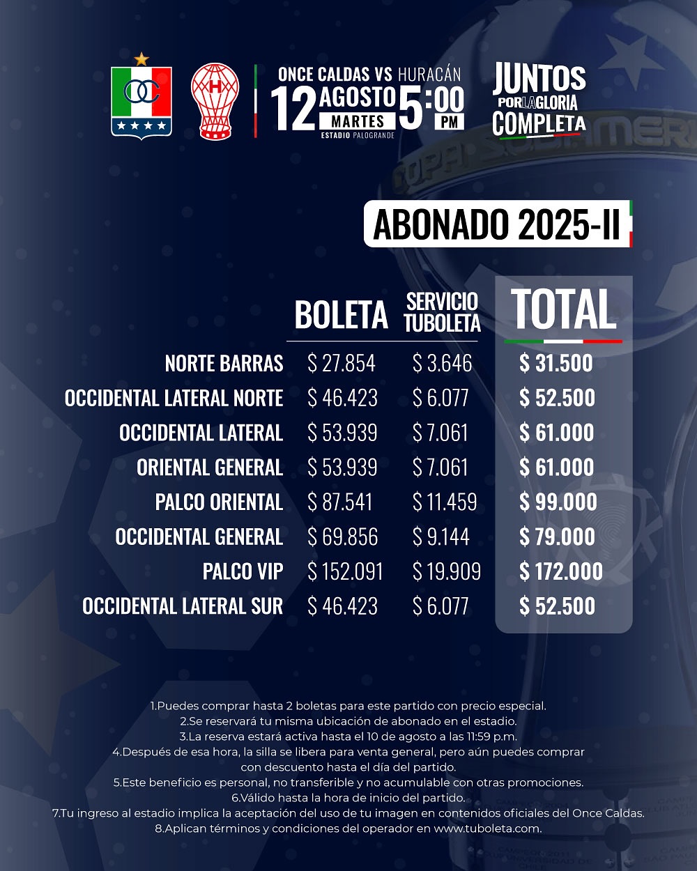 ¡Mañana comienza la venta de boletería para el duelo de Copa Sudamericana entre Once Caldas