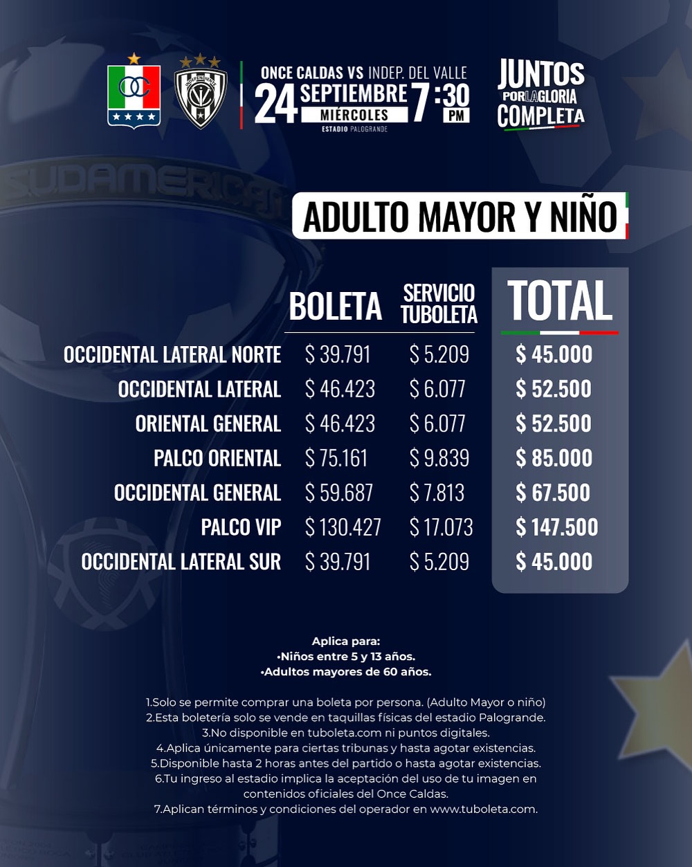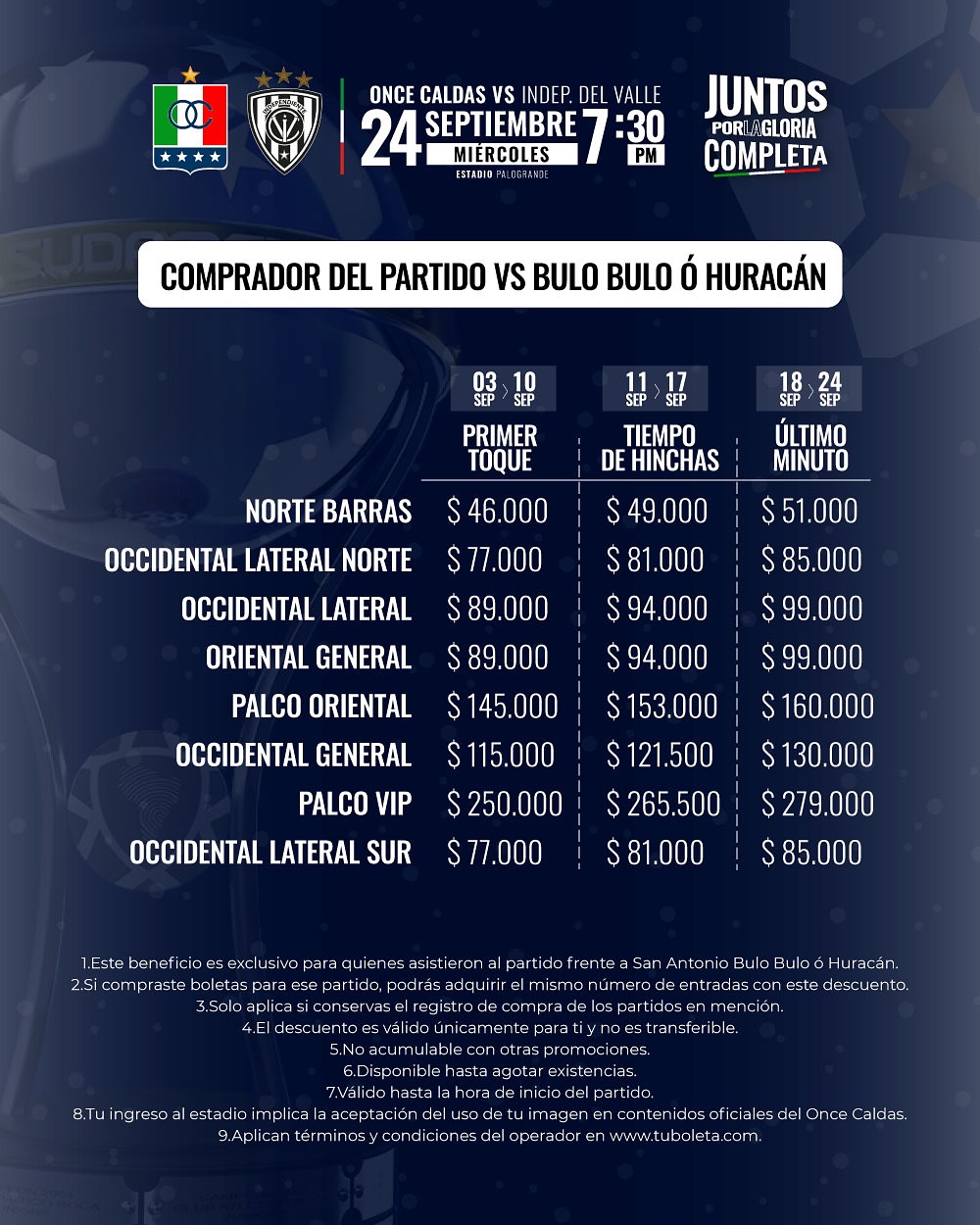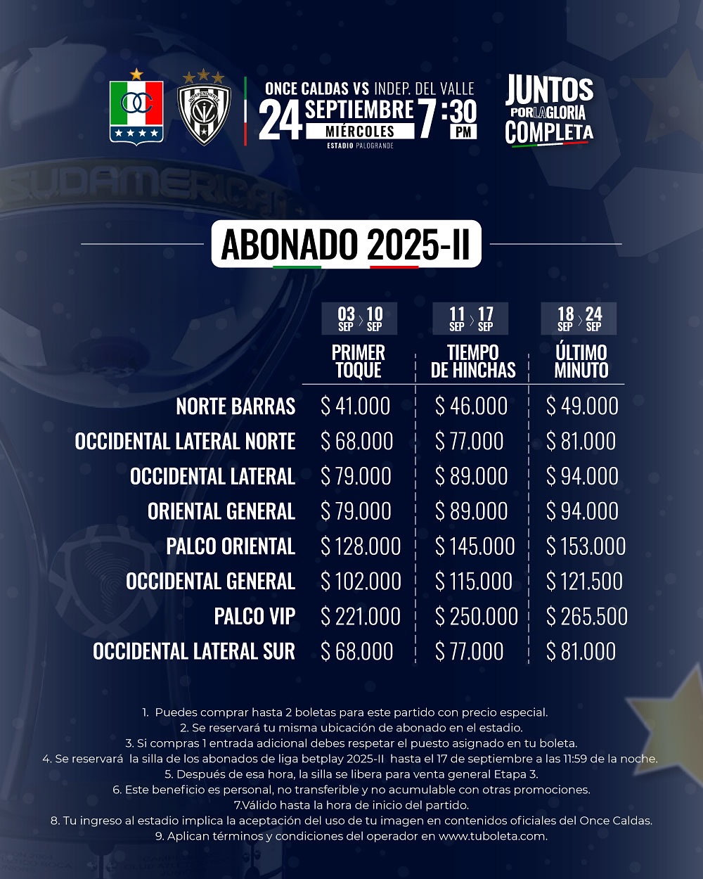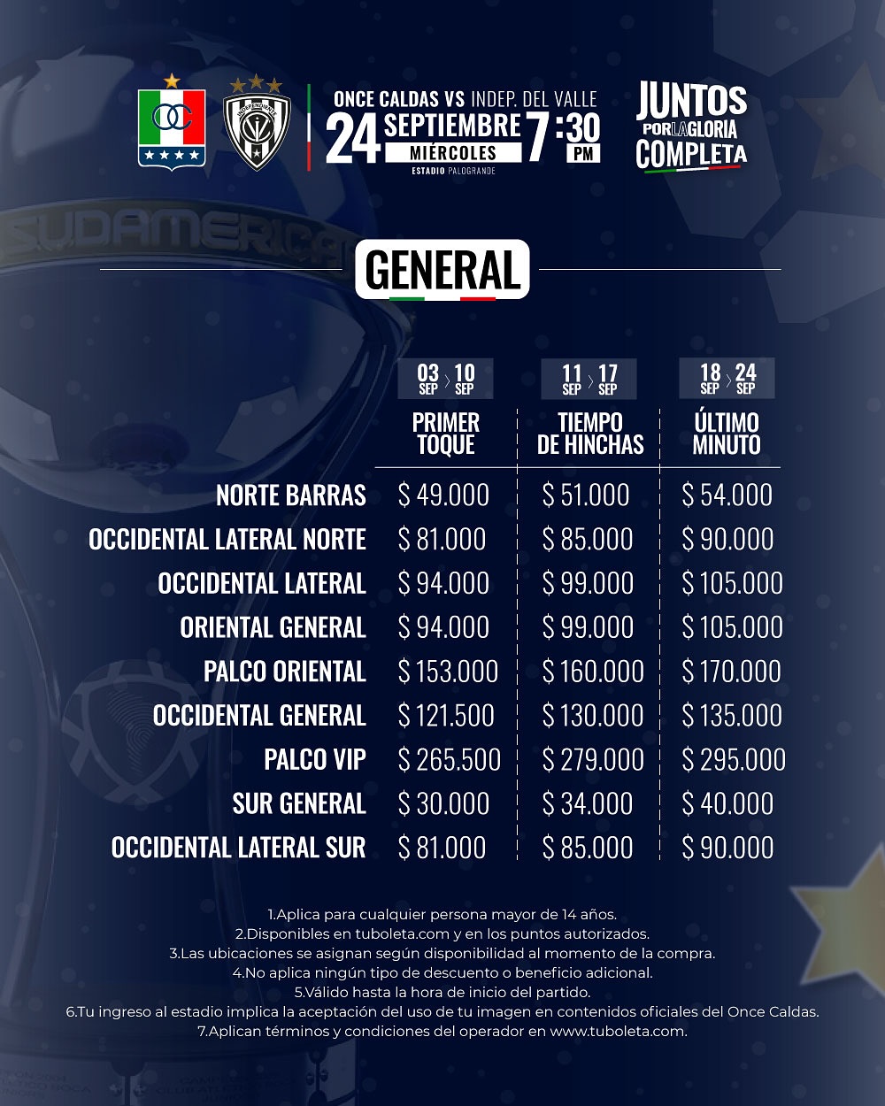 Boletería por Copa vs Indep. Del Valle
