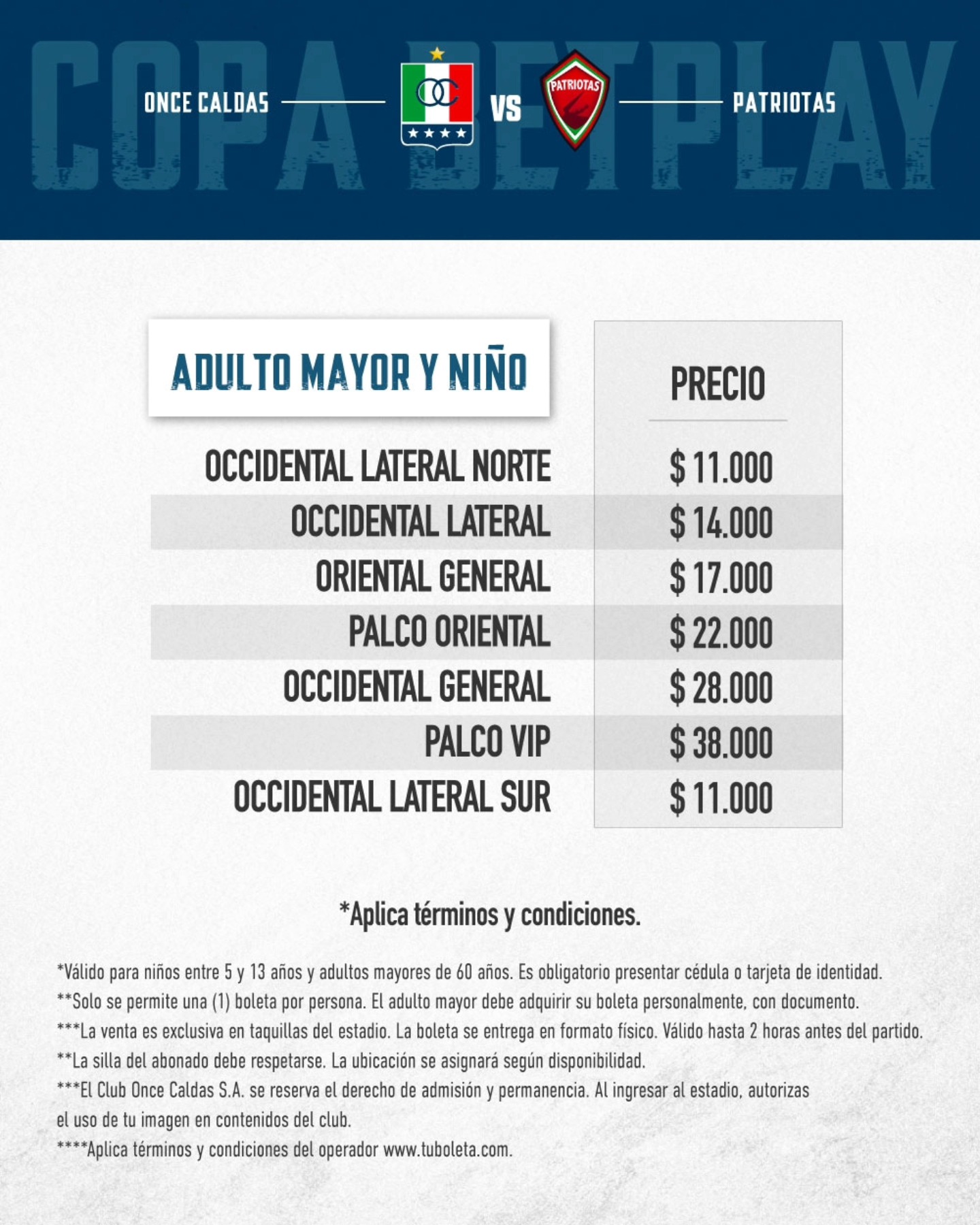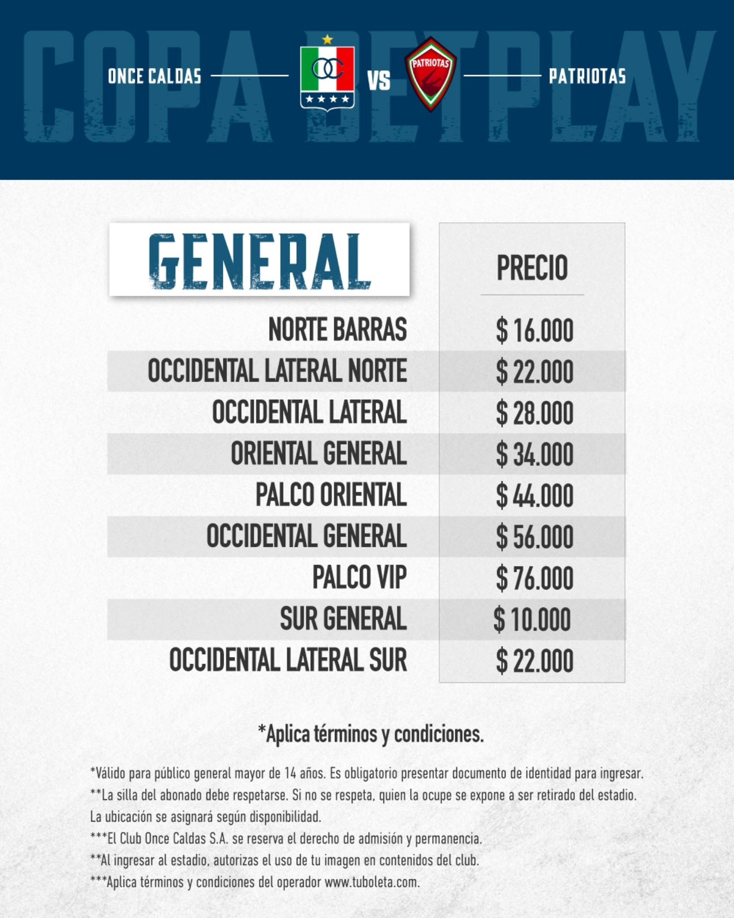 Boleteria por Copa vs Patriotas