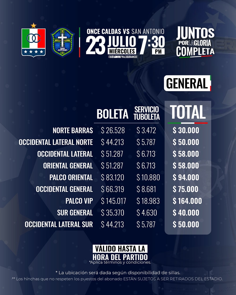 Boleteria por Copa vs San Antonio