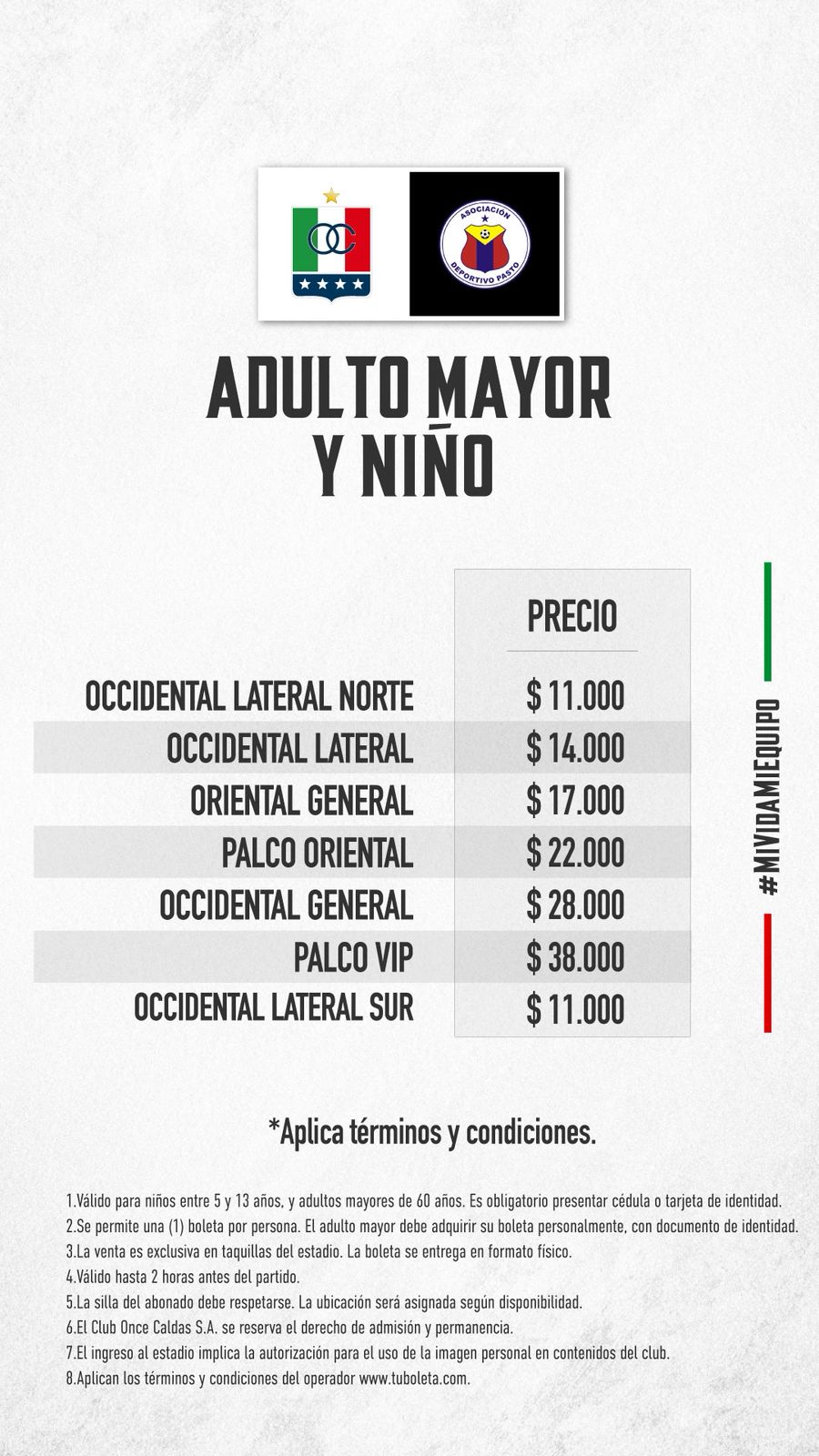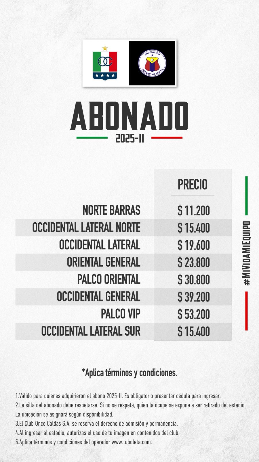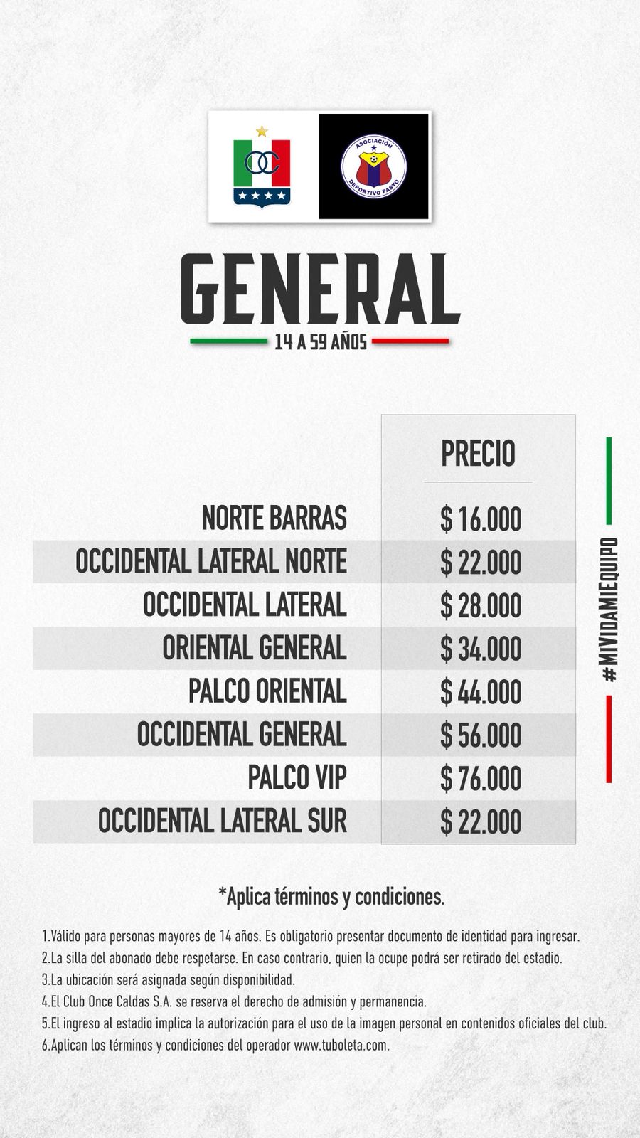 Boletería por Liga vs Pasto