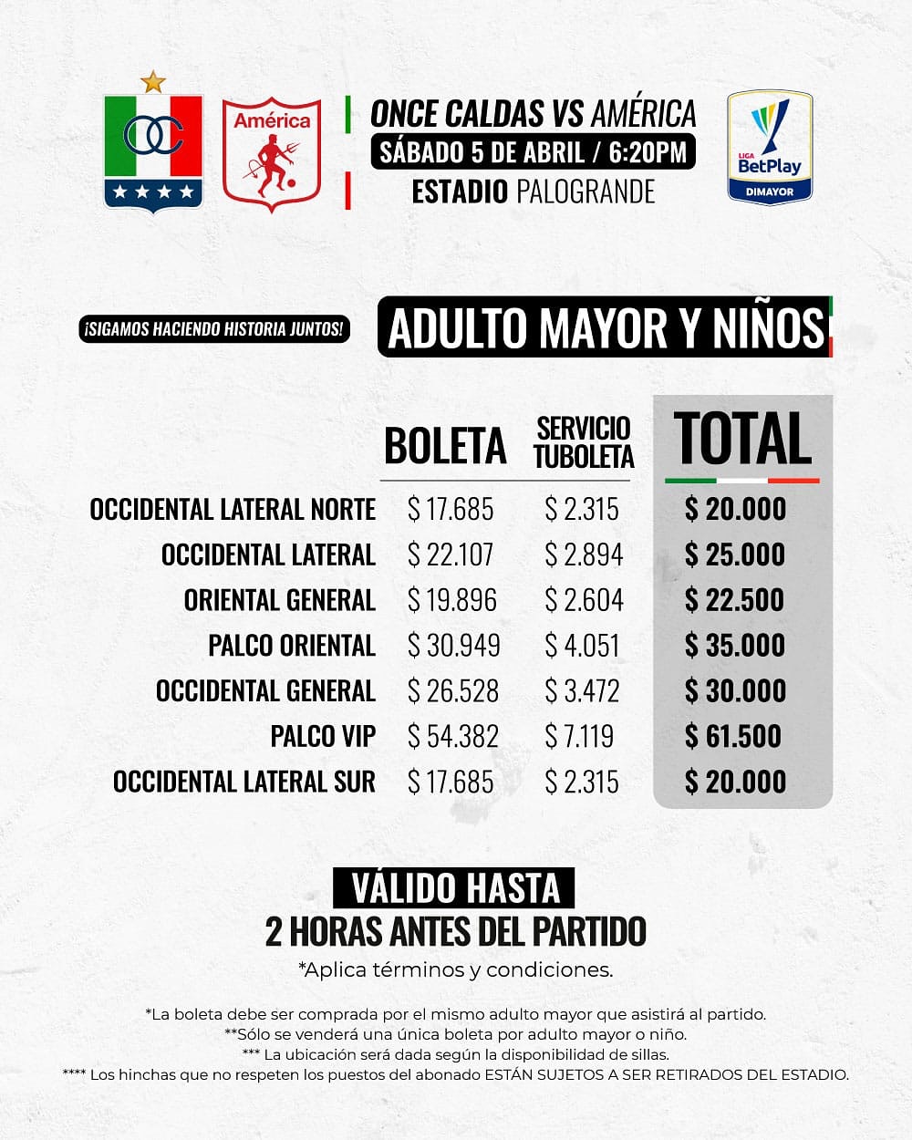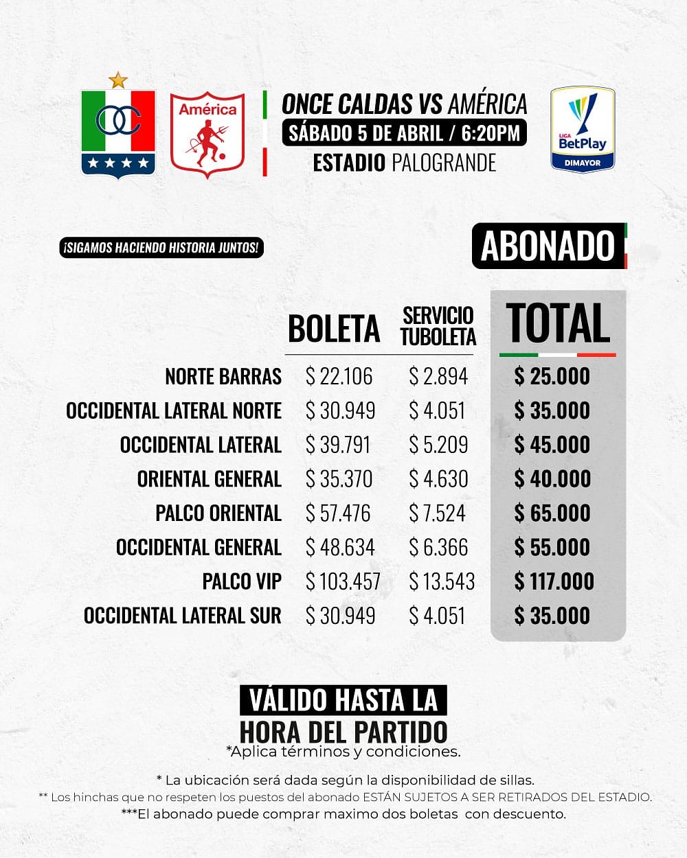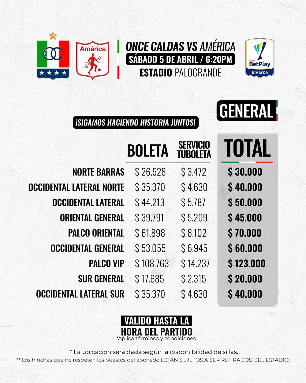 Boletería vs América x Liga
