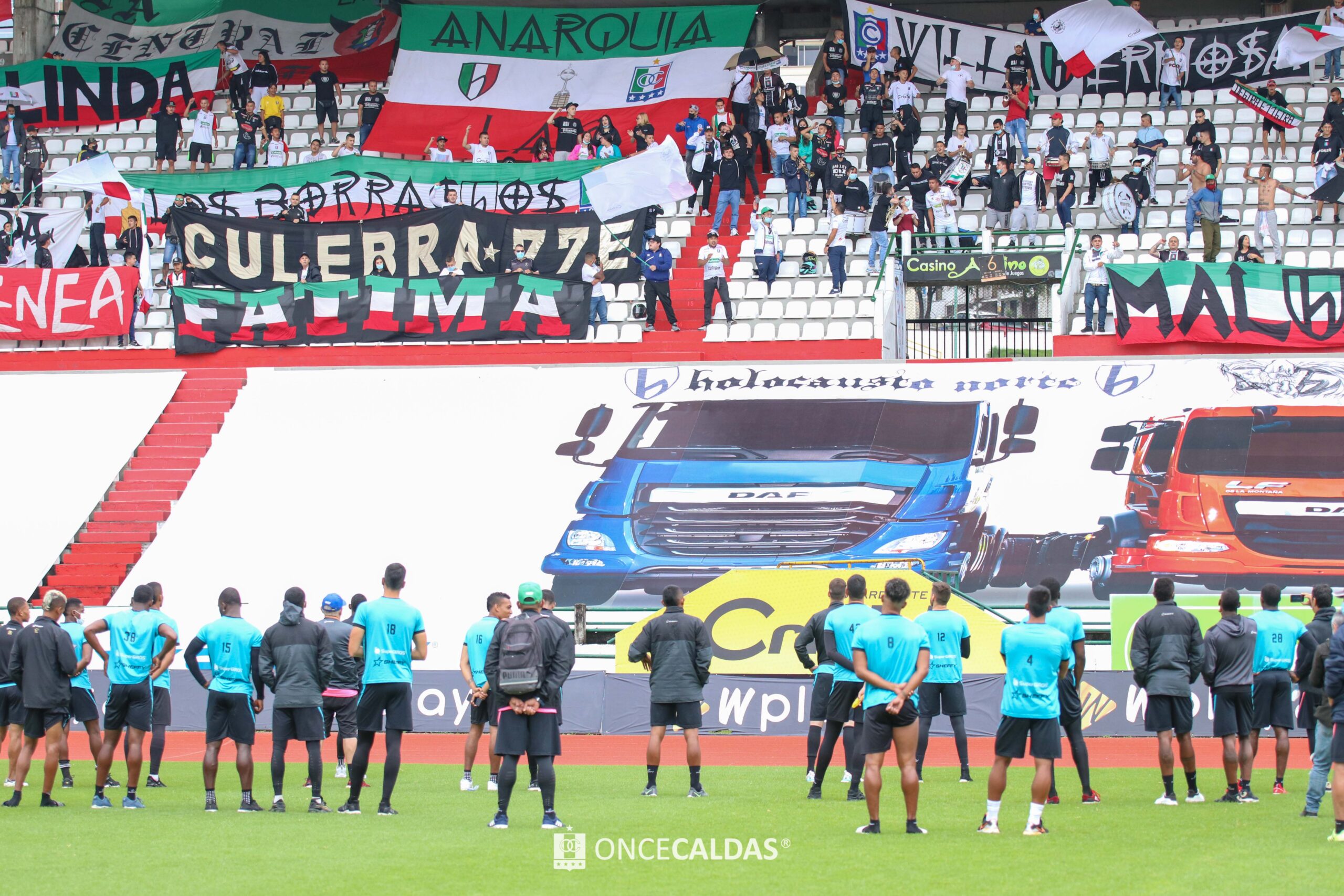 La práctica final antes del clásico cafetero contó con la energía extra de los hinchas desde las tribunas. La barra Holocausto Norte llegó hasta las gradas del Palogrande para acompañar el entrenamiento con sus mensajes de aliento al grupo que cerró la preparación para enfrentar al Deportivo Pereira, este domingo en Manizales.