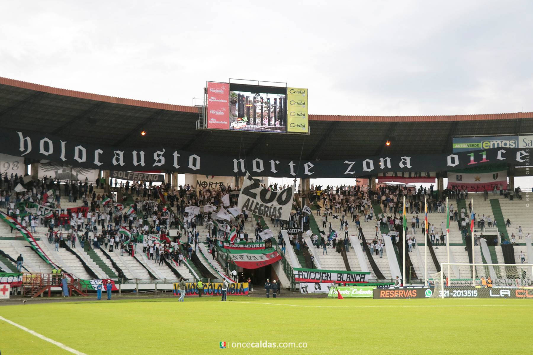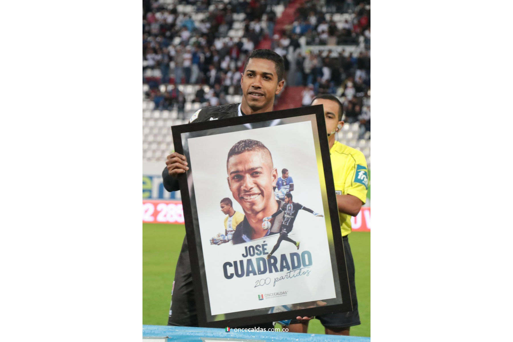 El equipo y sus hinchas rindieron un homenaje a José Fernando Cuadrado por sus más de 200 partidos en el arco del Once Caldas. El legendario Juan Carlos Henao, entrenador de arqueros, acompañó al capitán en el reconocimiento.