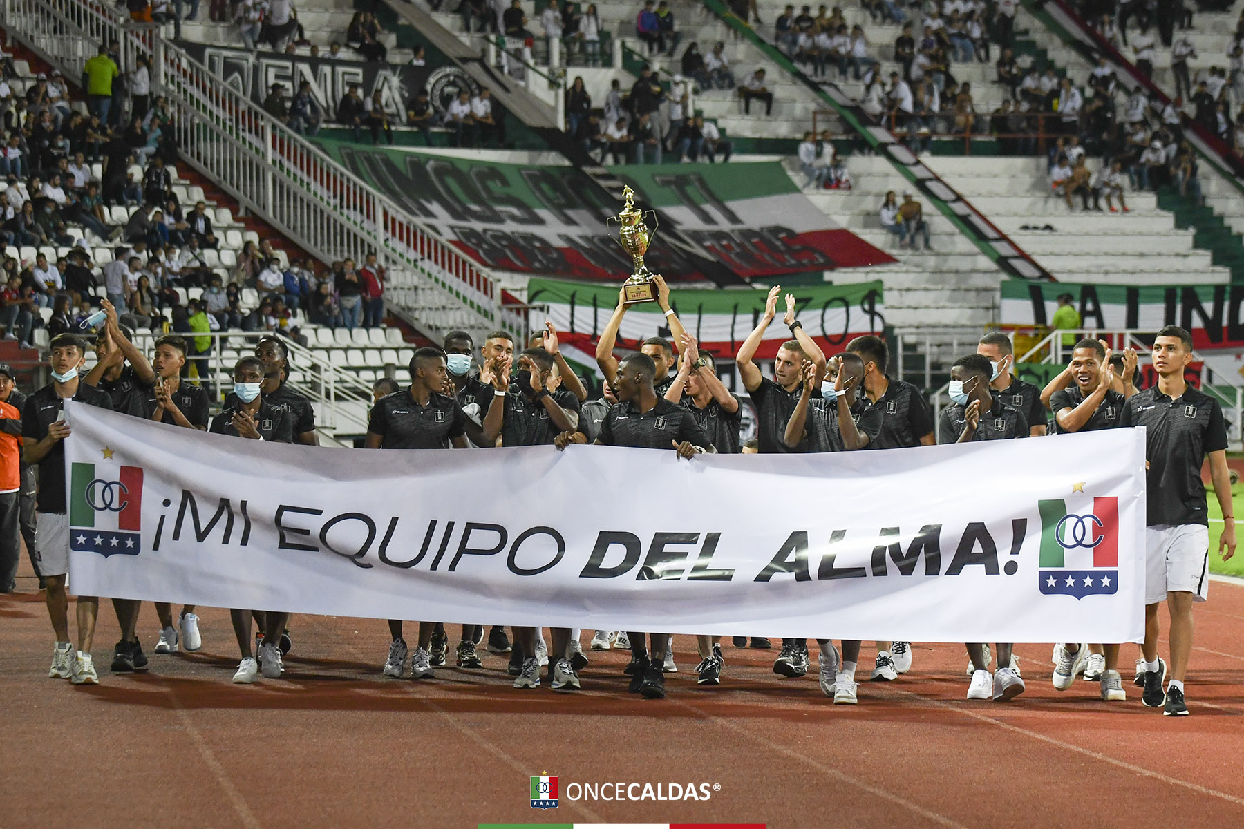 En el entretiempo del juego Once Caldas vrs. Atlético Júnior, el equipo juvenil, campeón del Torneo Nacional Interclubes de la Difútbol Sub 20 B, dio la vuelta olímpica y presentó el trofeo a los asistentes al partido, quienes brindaron aplausos a los campeones como un reconocimiento por el logro. Los integrantes de la plantilla y el cuerpo técnico agradecieron los mensajes y el reconocimiento de los hinchas.
