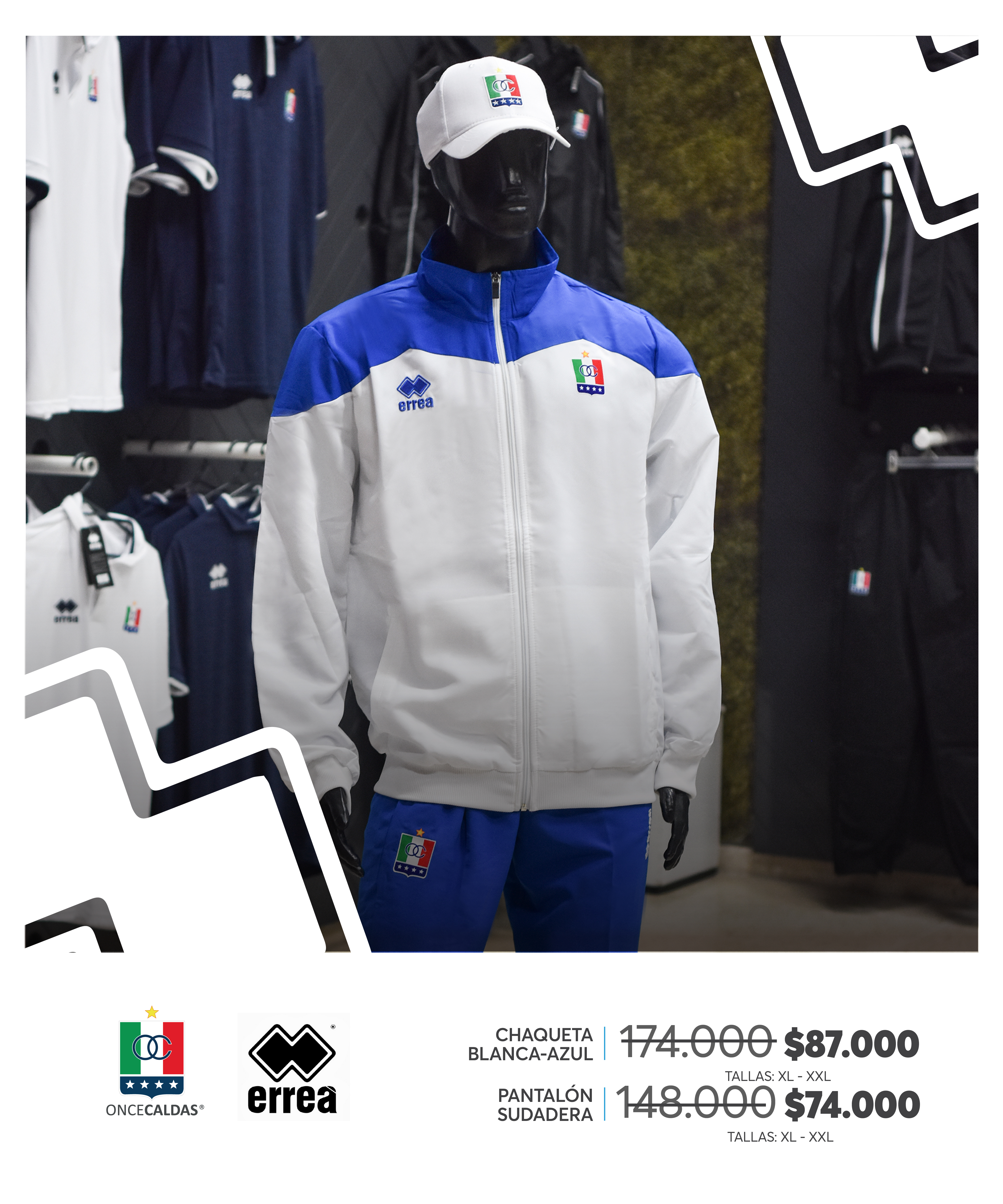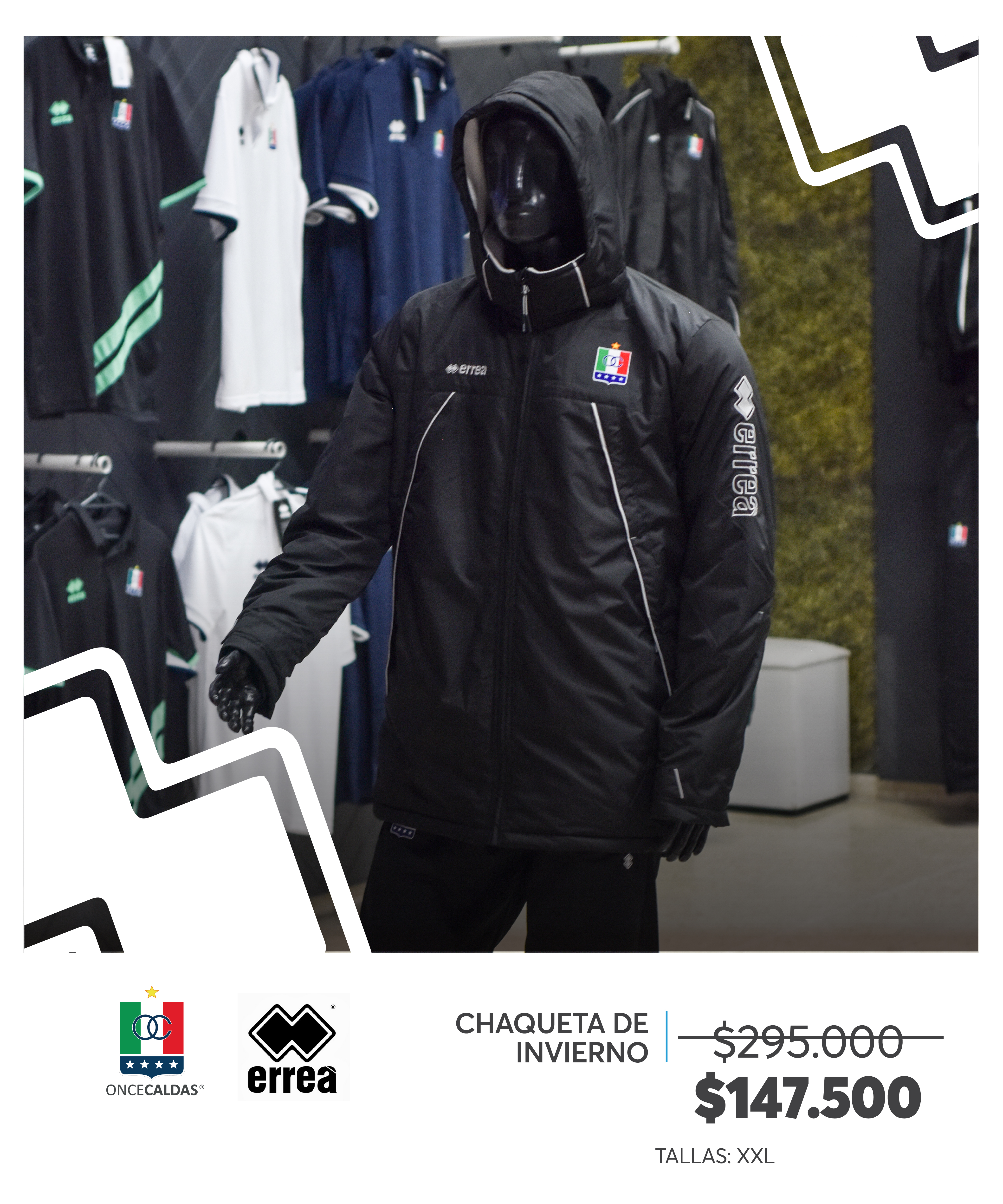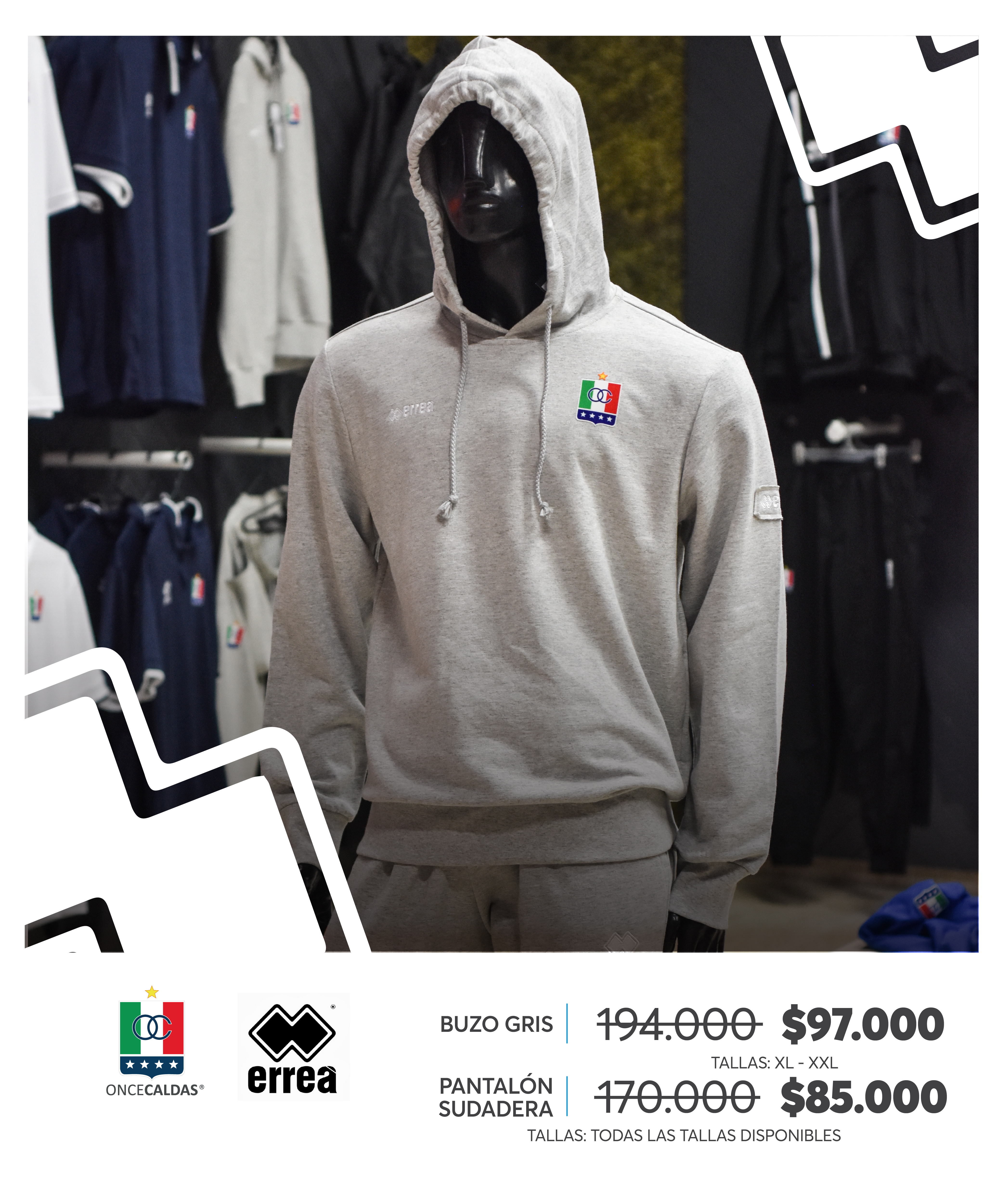 Desde hoy, la tienda Once invita a los hinchas del Once Caldas a adquirir prendas de la colección anterior con descuento del 50%. Esta promoción aplica para prendas de la marca Errea en tallas disponibles, hasta agotar existencias.