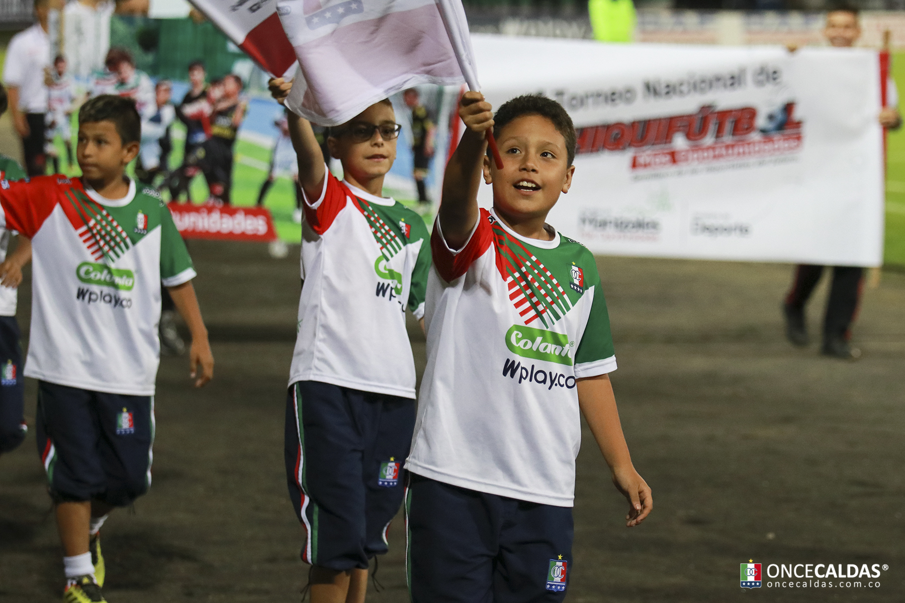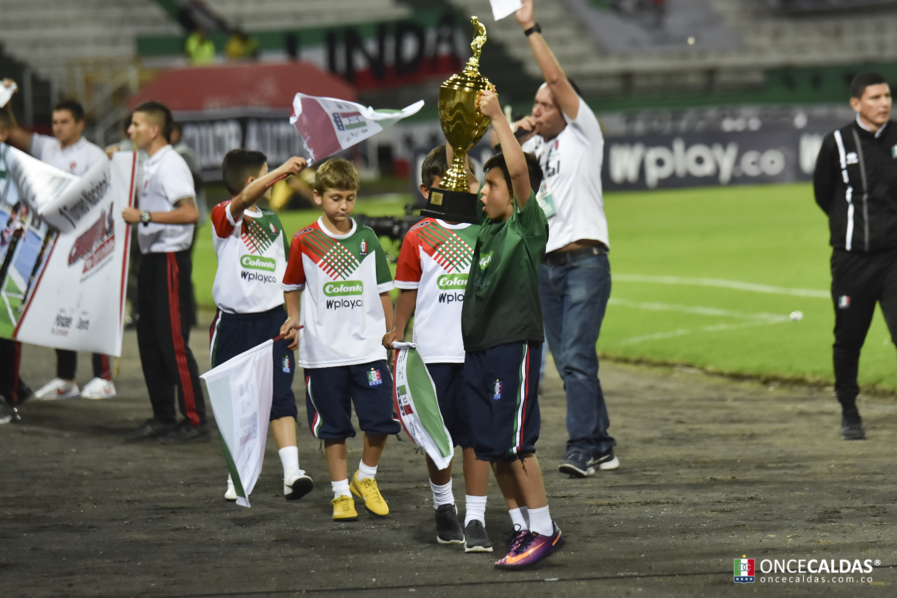 El equipo de las Escuelas de Fútbol del Once Caldas, categoría Sub 10, Campeón del Primer Torneo Nacional Chiquifútbol, realizado en Manizales, acompañó al grupo profesional en los actos de protocolo del partido de Liga Águila, Once Caldas 4 Cali 0, y en el intermedio del juego dieron la vuelta olímpica al Palogrande, exhibiendo la copa que los acredita como ganadores del certamen y como representantes del país para el torneo internacional Chiquifútbol, a realizarse en la ciudad del 27 de junio al 1 de julio del 2019.