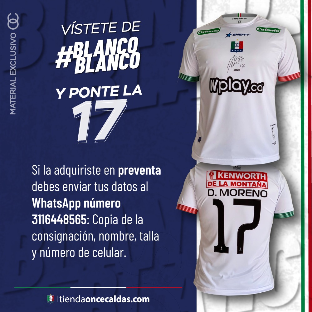 1. Si la adquiriste en preventa debes enviar tus datos al WhatsApp número 3116448565: Copia de la consignación, nombre, talla y número de celular.2. Si aún no la compraste estás a tiempo, puedes consignar ($150.000) en la cuenta de ahorros Bancolombia número: 70556069210 o separarla directamente en la tienda. (Las tallas XXL y XXXL valen $160.000)3. Las camisetas están en proceso de producción en la firma Sheffy y empezarán a llegar a partir del viernes 25 de septiembre, en lotes de 200 camisetas, se entregarán en orden de compra.