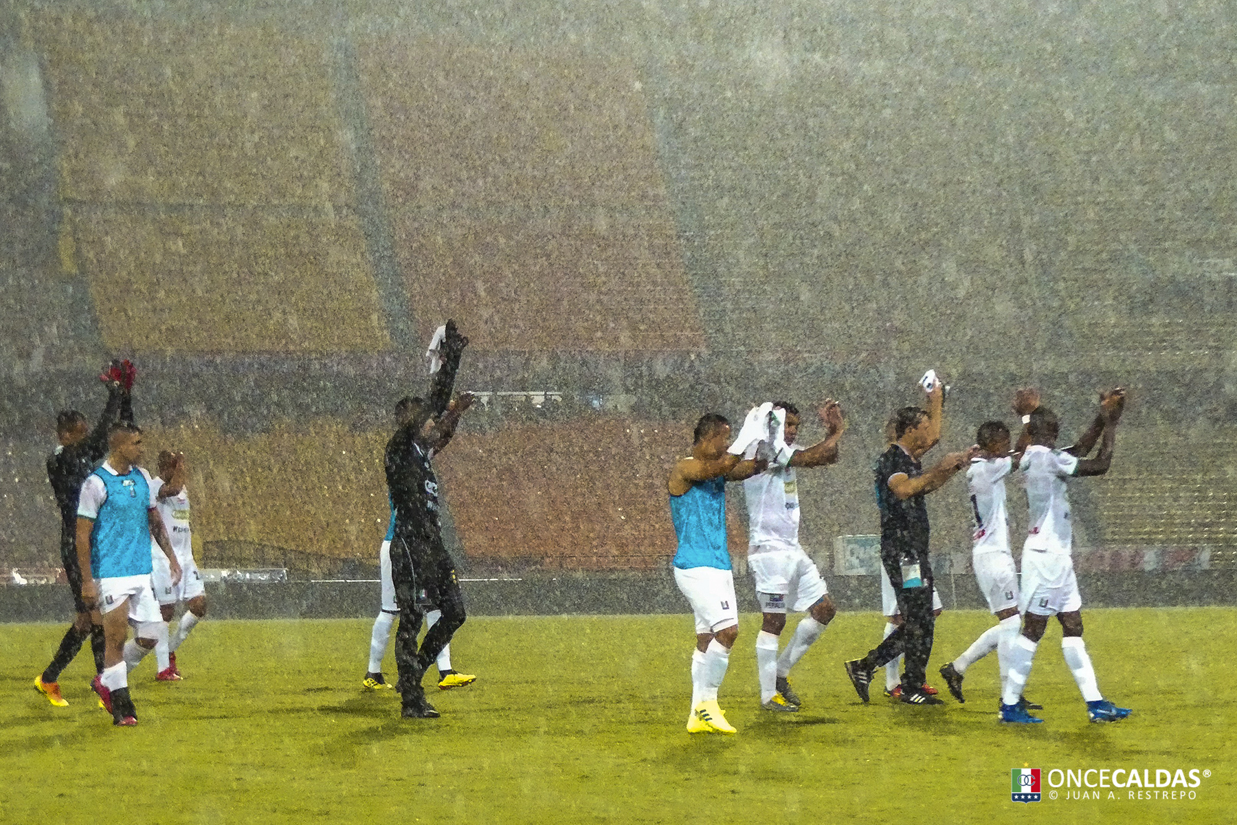El director técnico del Once Caldas, Huberth Bodhert, elogió el desempeño de sus dirigidos que con 10 hombres empataron el encuentro y controlaron al local. «Cuando vino la expulsión la orden era que no nos echáramos para atrás. El equipo intentó elaborar, con inicio de juego, con un hombre menos buscó siempre elaborar opciones de gol, se presentaron situaciones fortuitas de juego fuerte, no es lo nuestro, buscamos siempre juego con criterio».
